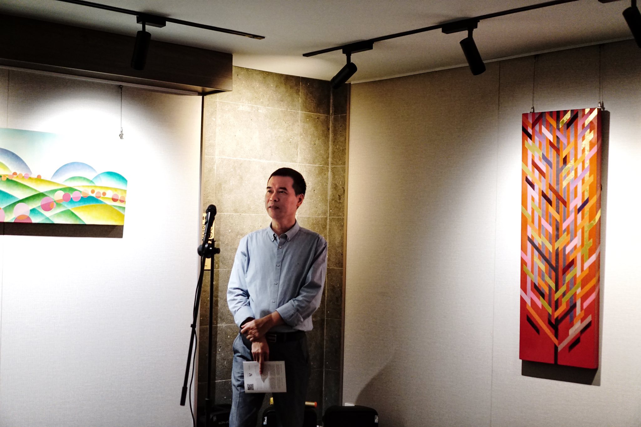 Anh chia sẻ thêm: “Mỗi tác phẩm đều có một chủ thể rõ ràng, nhưng khi đặt trước mắt người xem, cảm nhận lại mở ra như một cuộc đối thoại. Các yếu tố trong tranh có thể như một cặp câu đối – vừa đối lập, vừa bổ sung cho nhau trong không gian. Tôi tin rằng nghệ thuật thị giác không chỉ để ngắm, mà để sống, để người ta cảm thấy được dẫn dắt, kết nối và soi chiếu chính mình qua những đường nét, sắc độ tưởng chừng vô ngôn”. Điểm nhấn trong “Màu Tây Bắc” còn nằm việc chọn lựa chất liệu sơn mài vốn nổi tiếng ở Việt Nam với độ óng ánh, chiều sâu và sắc vàng tự nhiên đặc trưng. Theo nhà thiết kế, đây là một chất liệu “đẹp nhưng khó”: pha màu trên sơn mài phức tạp hơn nhiều chất liệu khác, nhưng khi đạt đến độ nhuần nhuyễn nó mang lại hiệu ứng thị giác đầy thẩm mỹ và trừu tượng. Với anh, tranh không chỉ để ngắm mà còn mang tính ứng dụng vào không gian sống và làm việc để giúp nuôi dưỡng tâm hồn, tạo nên một cảm xúc riêng biệt cho người xem.