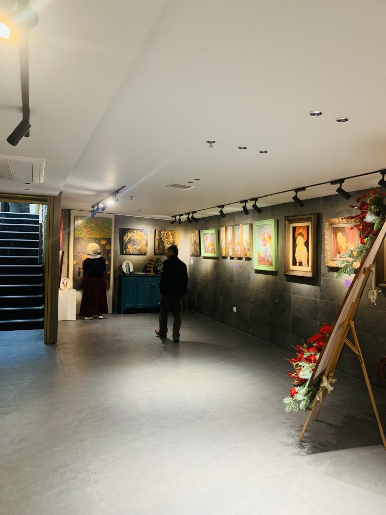 Tham gia triển lãm, họa sĩ Vũ Thùy Mai mang đến loạt tranh tĩnh vật mang sắc thái hoài cổ, với bố cục nhiều lớp và gam màu trầm, gợi cảm giác yên tĩnh, chậm rãi. Hoa lá, gốm sứ và những đồ vật quen thuộc được đặt trong không gian yên tĩnh, gợi cảm giác chậm rãi và an nhiên. Trong khi đó, Phạm Thị Hồng Sâm theo đuổi hội họa trừu tượng, sử dụng các mảng màu đối lập và nhịp điệu hình khối để diễn tả dòng chảy của tư duy sáng tạo.