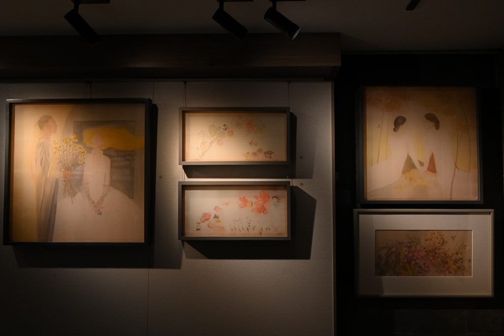 Với Tống Ngọc, tình yêu không được kể bằng những câu chuyện cụ thể mà hiện lên như một miền ký ức mong manh. Những hình ảnh trẻ thơ, thiếu nữ và hoa lá trong tranh lụa của chị xuất hiện nhẹ nhàng, bảng lảng, gợi cảm giác trong trẻo và tự do.