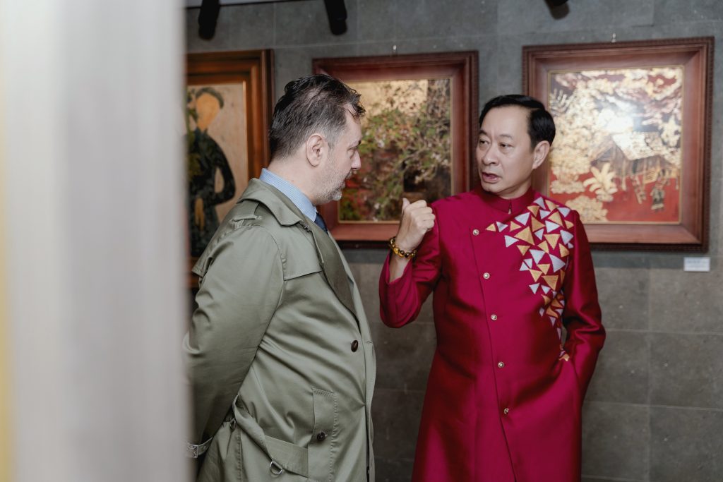 Theo nam họa sĩ, trong nghệ thuật, từng chi tiết đều kể câu chuyện văn hóa. Chiếc cúc áo của người Thái hay họa tiết của đồng bào Mông, Dao phản ánh tập quán, văn hóa bản địa và phương thức sinh hoạt. Không chi tiết nào trong tranh là ngẫu nhiên: từ trang phục, màu áo đến hoa nền, tất cả kể nên câu chuyện về đời sống và con người. Mỗi tác phẩm là thông điệp văn hóa được mã hóa bằng hình ảnh, nhiệm vụ của người xem là cảm nhận và giải mã.