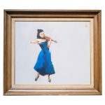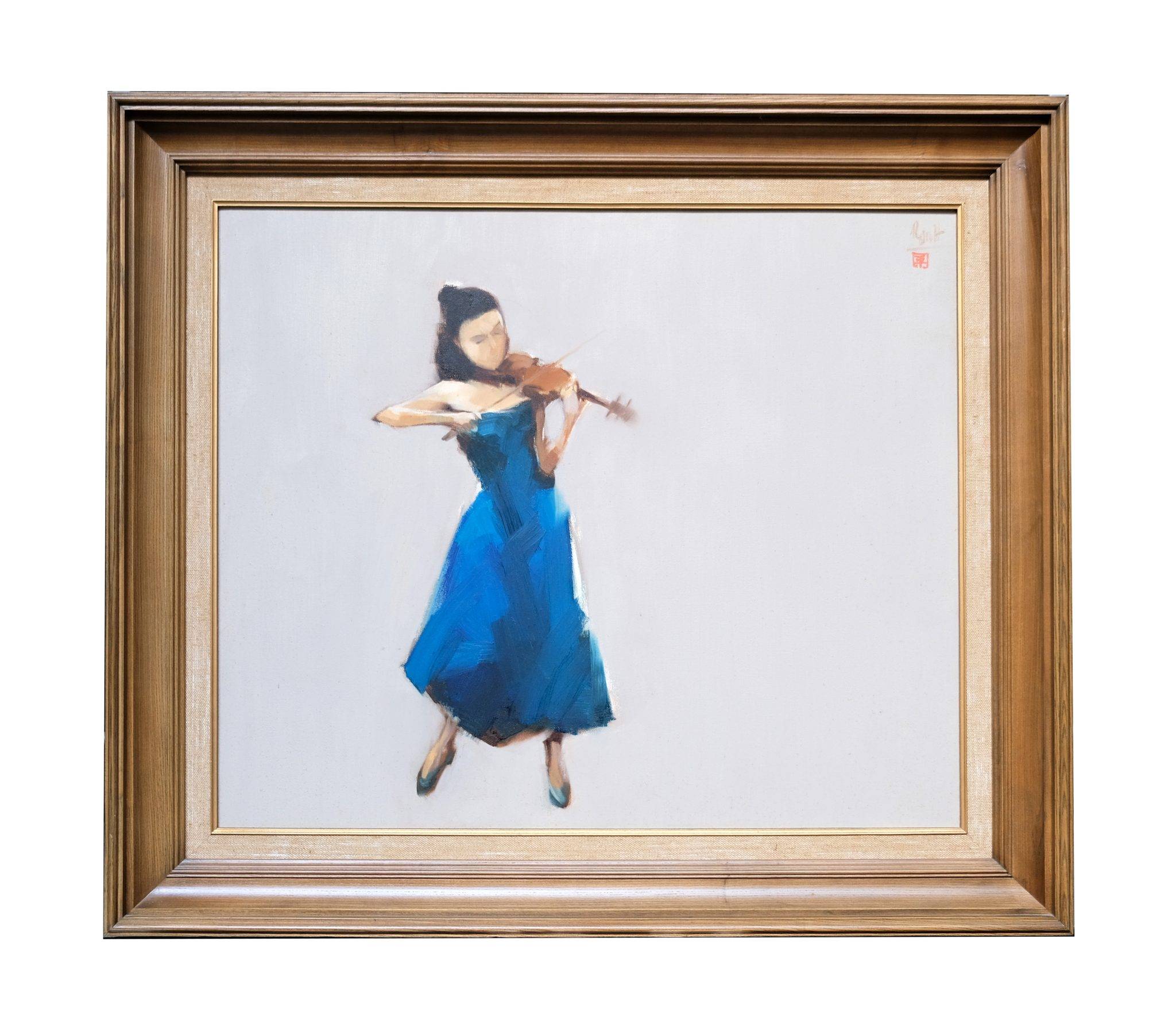 Dừng chân trước tác phẩm “Độc tấu Violon” của họa sĩ Nguyễn Thanh Bình chợt nhận ra phải chăng âm thanh ấy từ nét cọ cất lên? Một nàng thiếu nữ trong chiếc váy xanh thẳm, giản dị mà thanh tao đang chìm đắm trong thế giới âm nhạc của mình như truyền cả tình yêu âm nhạc cổ điển ấy tới mọi người. “Độc tấu Violon” vì thế không chỉ là một bức tranh, mà còn là một bản nhạc thầm thì gửi đến tâm hồn: nhẹ nhàng, tinh tế nhưng thấm sâu và bền lâu.